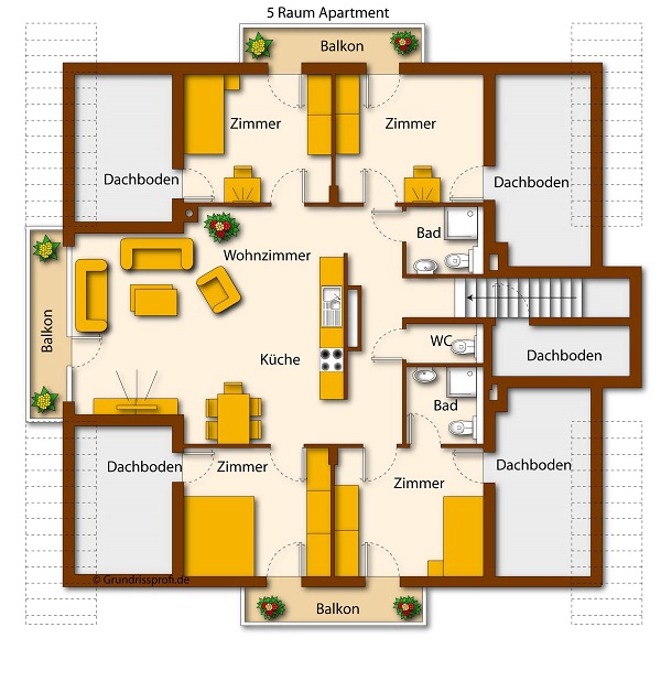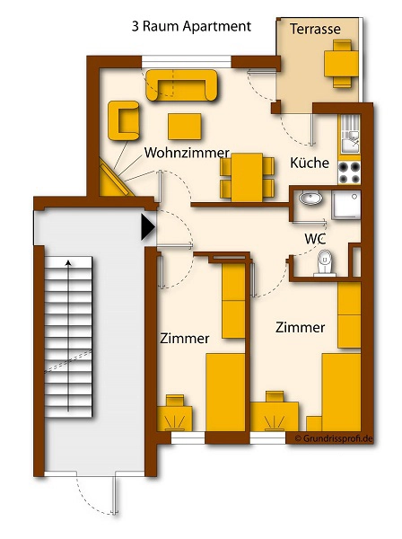 Jedes Apartment verfügt über Terrasse oder Balkon.